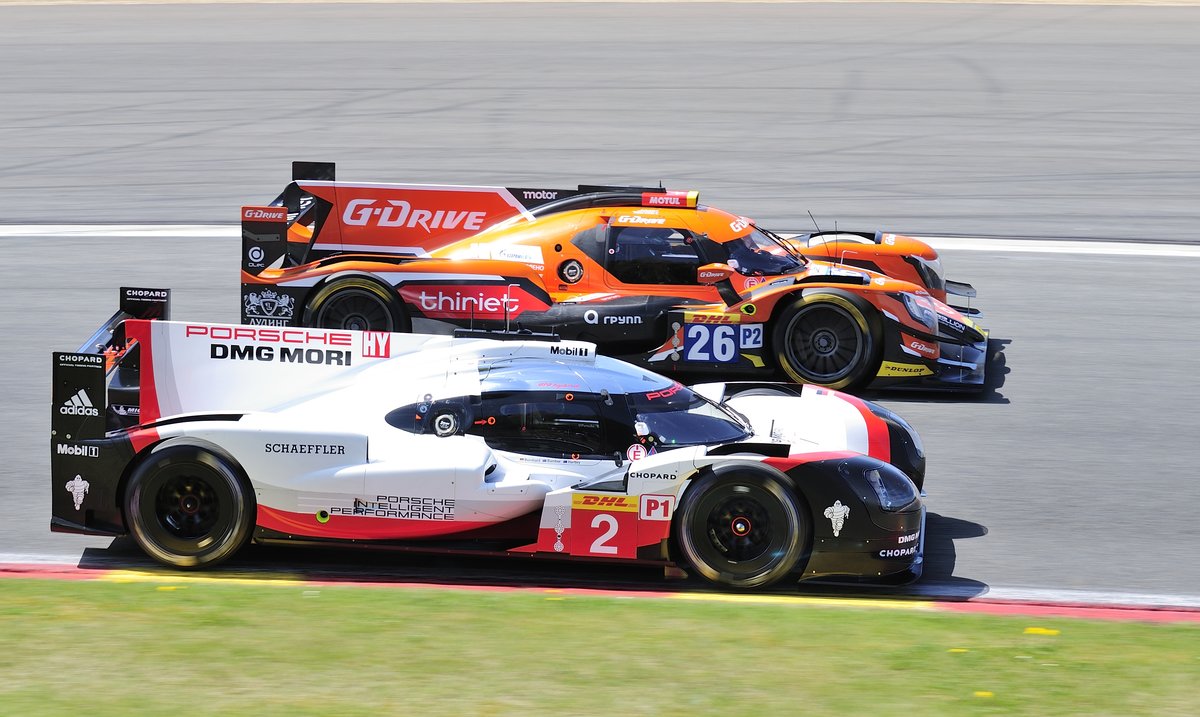 Porsche LMP1 vs. Oreca 07 (Gibson)LMP2, auf dem Weg zur Startaufstellung beim FIA WEC 6h Langstrecken- WM am 6.Mai 2017 in Spa Francorchamps