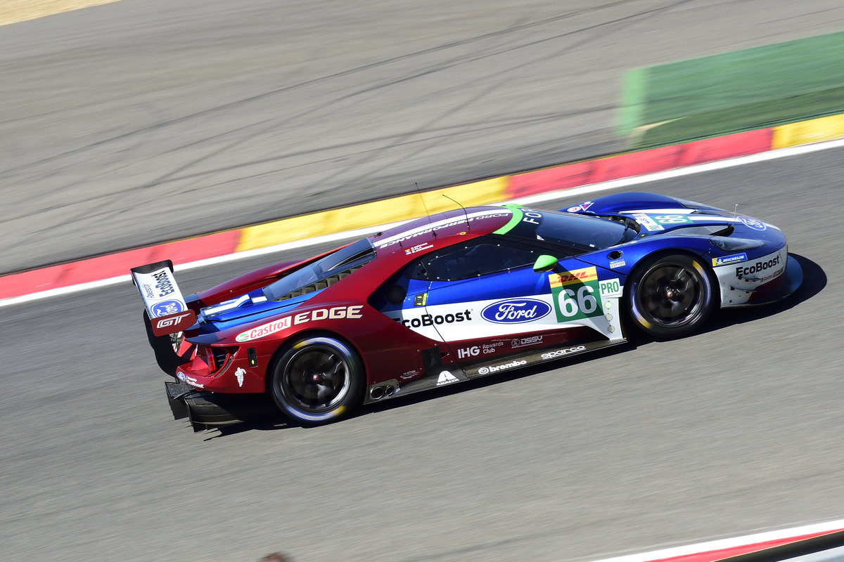 Mitzieher vom LM GTE Nr.66 Pro, Chip Ganassi Racing, Ford GT, Stefan Mücke, Olivier Pla & Billy Johnson. Langstrecken-WM (FIA WEC) – Sechs Stunden von Spa-Francorchamps 5.Mai 2018