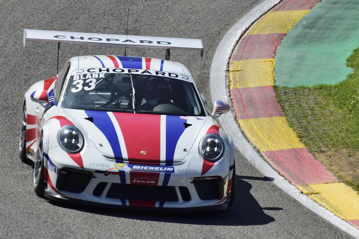Frontal Aufnahme der #33 Howard BLANK (ITA) Team: RMS, Porsche GT3 Cup 991,Rahmenprogramm der FIA WEC 6h Spa Francorchamp. Gemeinsames Rennen der Porsche GT3 Cup Challenge Benelux, und des Porsche Carrera Cup France am 5. Mai 2018