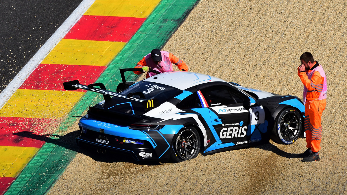 Aus im Kiesbett für Nr.3 Ziad Geris, Team: PG Motorsport, Porsche Carrera Cup Benelux, wie immer ist der PCC Benelux im Rahmenprogram der FIA WEC 6h in Spa Francorchamps, gefahren wird mit dem 911 (Type 992), Aufnahme 11.5.2024