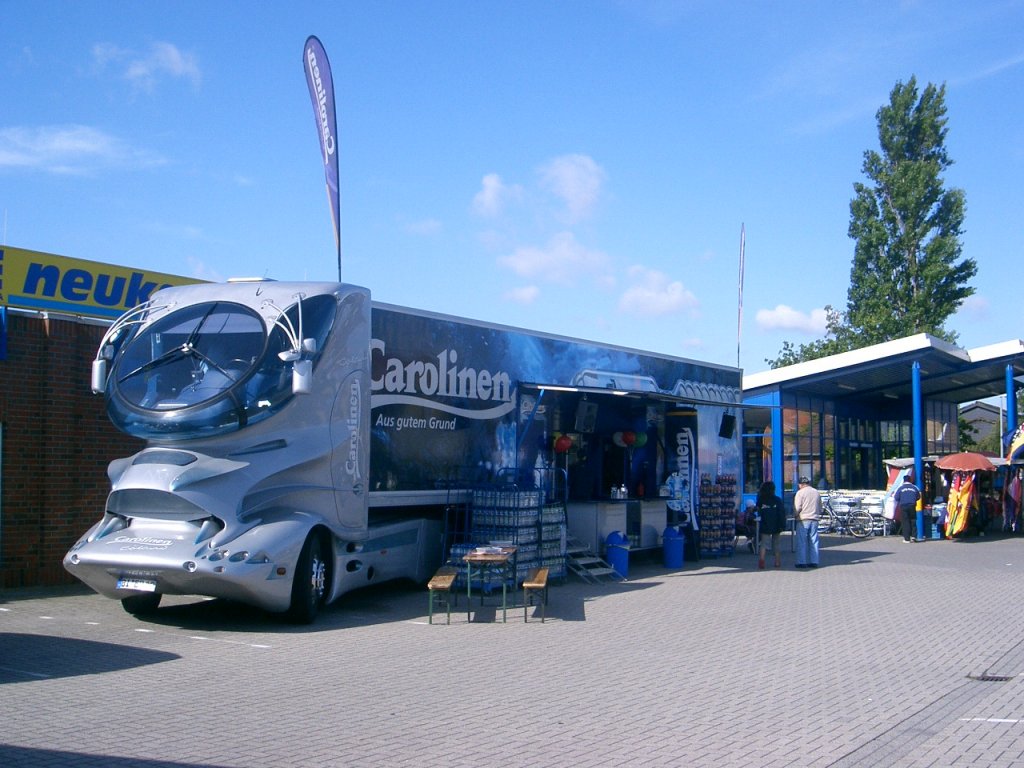 BI-ER 12, ein DAF-Truck by Colani. Das Fahrzeug tourt durch Norddeutschland und macht Werbung für das Mineralwasser "Carolinen". Aufgenommen habe ich das Fahrzeug ein Carolinensiel, dort wo das Wasser ursprünglich herkommt. (Sommer 2008) Marv In