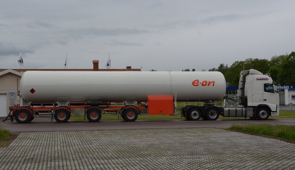 Volvo FH 500 ein sogenannter Gigaliner Gas-Tank Sattelzug mit 24 meter lang und 60Tonnen schwer beim entladen am 28.05.2012 bei Monsteräs/Schweden gesehen. In Schweden sieht man fast nur solche Riesen . M. Schiebel