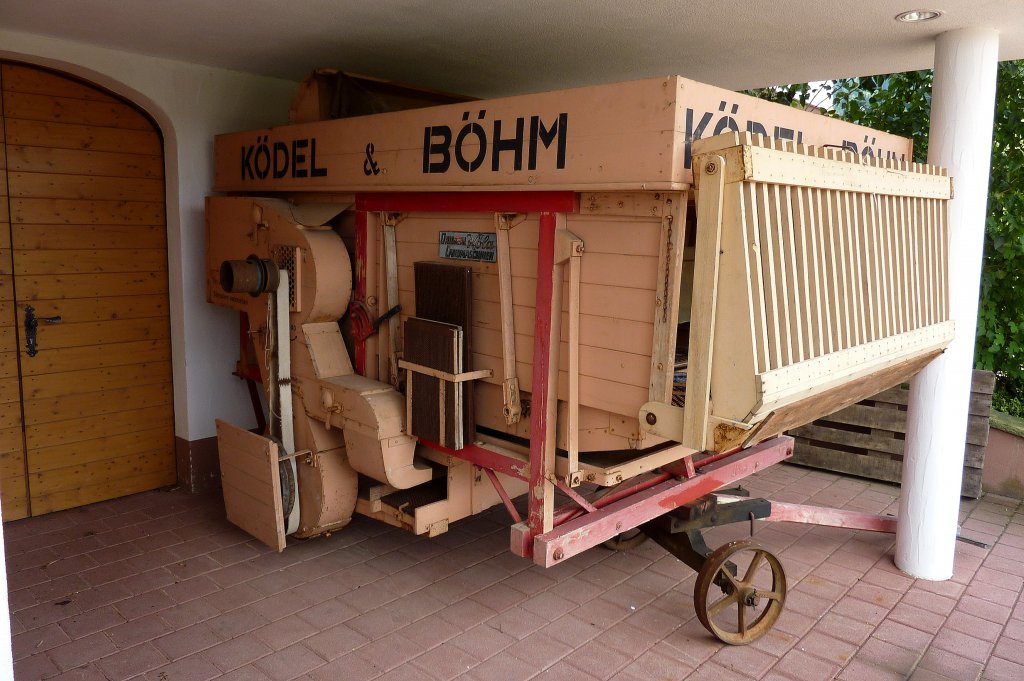 fahrbarer Dreschkasten der Firma Ködel&Böhm, 1909 gegründet in Lauingen/Schwaben, 1936 lieferten sie bereits die 100.000ste Maschine, gehört heute zu Deutz-Fahr, Aug.2011 rainer ullrich