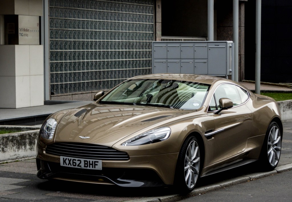 Die neuste Modelle des Aston-Martin Lineup parkierten vor einem Bar in Frankfurt. Viele Verkehrsteilnehmer haben am 29.11.2012 ihre Autos gehaltet und die Neuheiten angeschaut. Hier ein DB9 ist zu sehen. B. Mayer