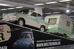 Ein Trabant P50 mit dem kleinen Wohnwagen LC9-200 in der Gepäckempfangshalle des Flughafens Dresden. (April 2017)