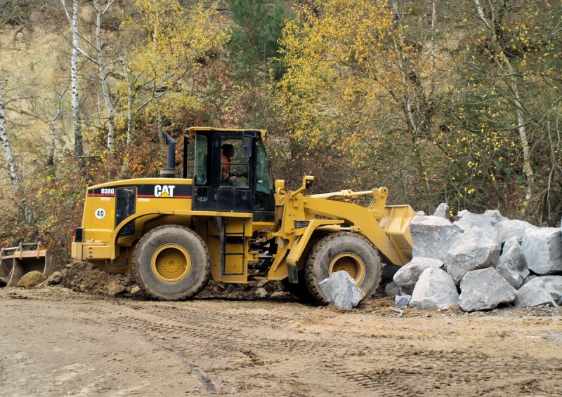 Cat 938 P beim Aufnehmen von "Steinchen" für die Uferbefestigung an der Steinbachtalsperre - 19.11.2008
