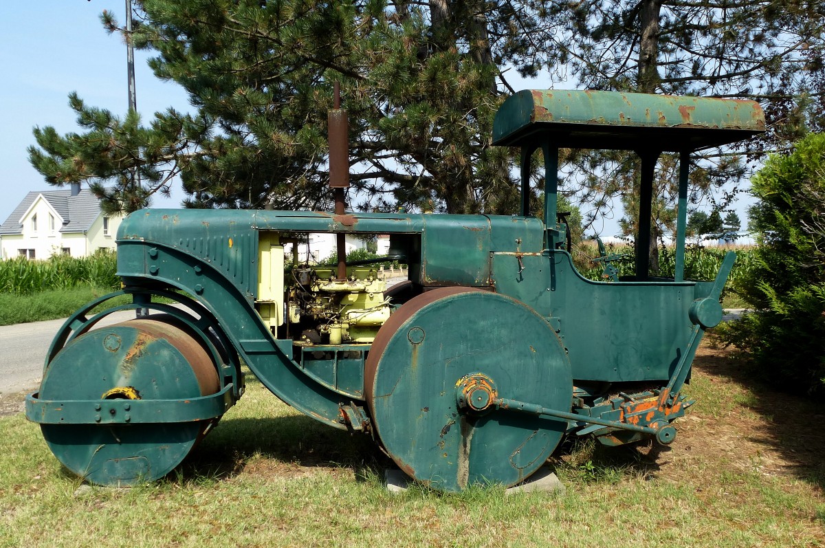 Diesel-Straßenwalze, abgestellt als technisches Denkmal im südlichen Elsaß, Aug.2015