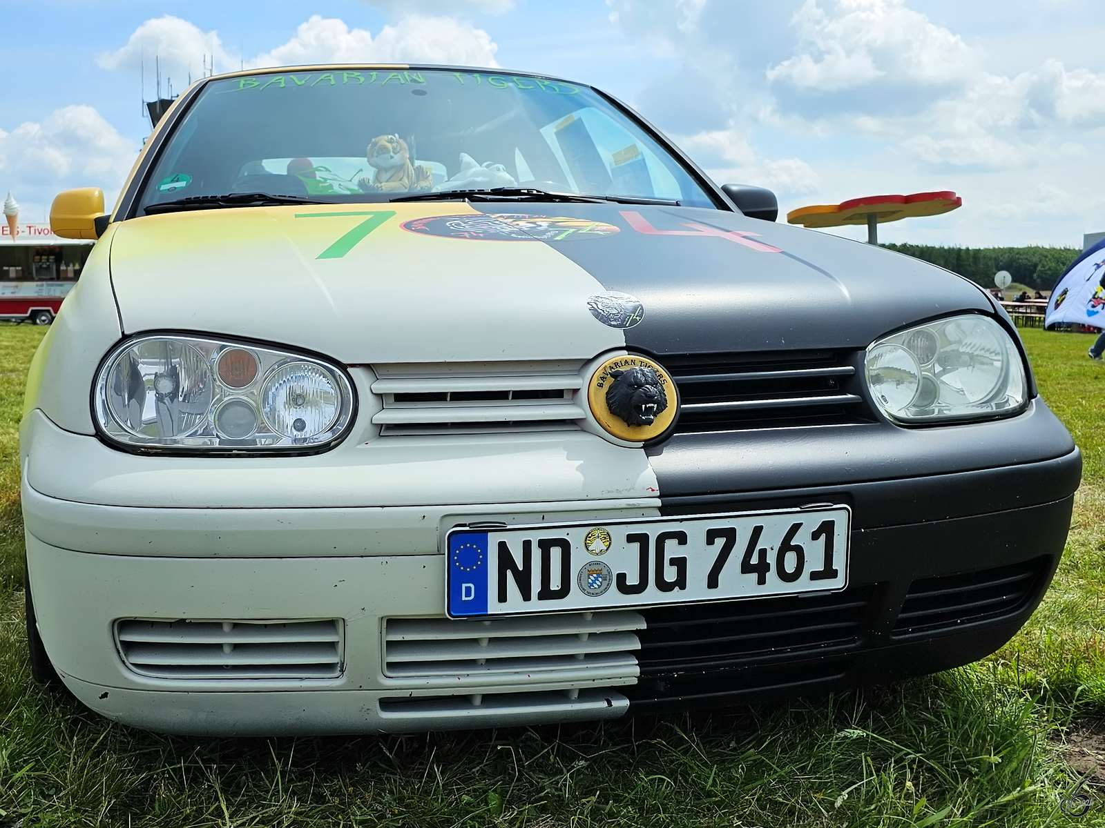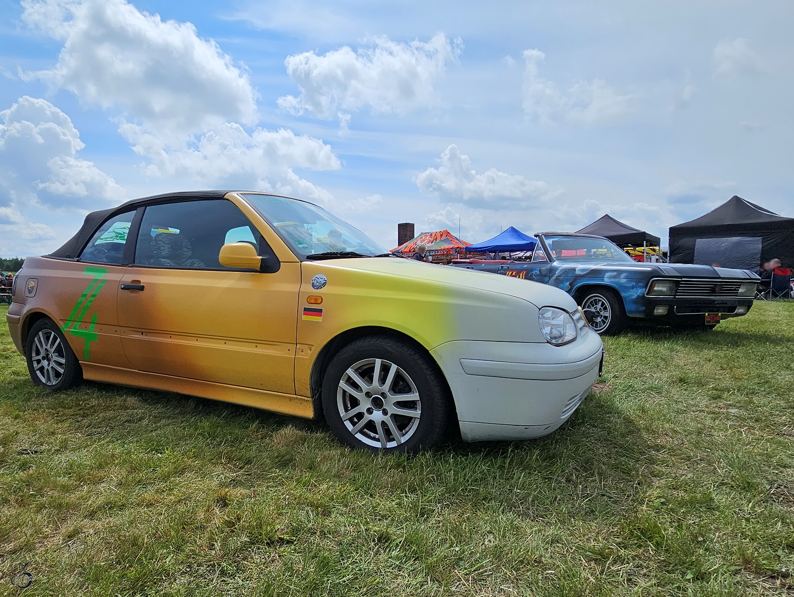 Frontalansicht eines VW Golf IV Cabriolets. (Jagel, Juni 2024)