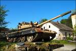 Der Panzer T-55 AM2 "Hammer" ist ein Kettenkampffahrzeug, das mit einer 100-mm-Kanone und einem 7,62-mm-Maschinengewehr bewaffnet ist. Diese Version des Panzers wurde in den 80er Jahren in der Tschechoslowakei. Militärhistorisches Museum Deštné am 1.5.2024. Jiri Zanka