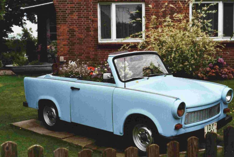 Ein Trabant 601, der seine letzten Tage als Blumenkübel in einem Vorgarten an der Hauptstrasse von Stade nach Twielenfleth verbringen muss. (2007) Torsten Klose