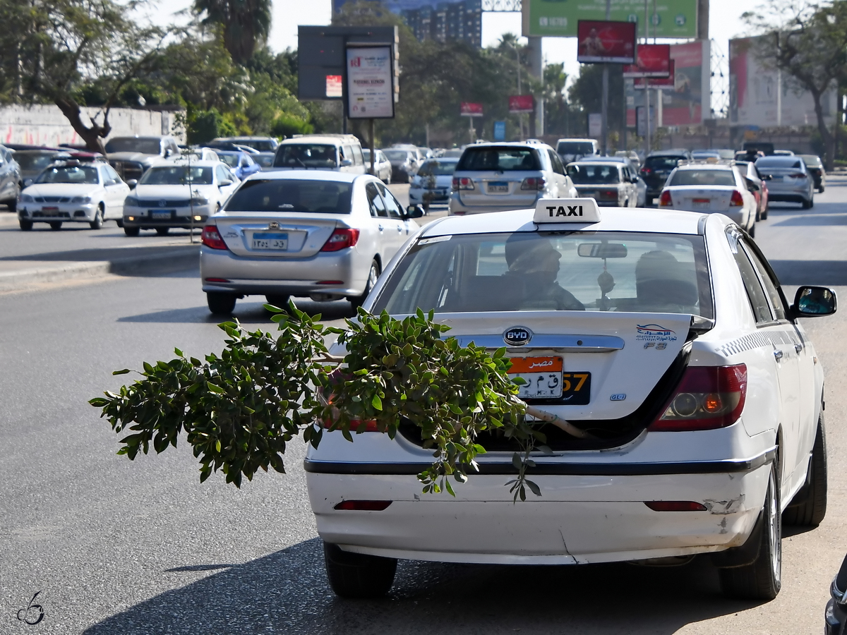 Ein Taxi (BYD F3 GL-I) mit seltsamer Fracht in Kairo. (Dezember 2018)