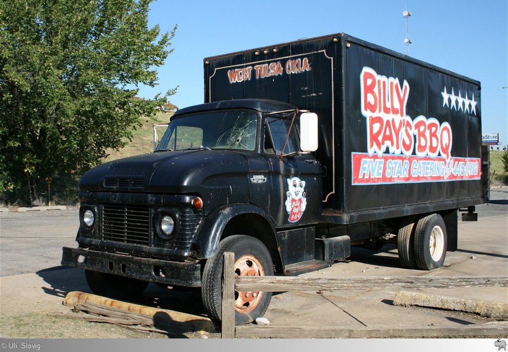 Old and Rusty: Dieser alte Ford N-600 macht in Tulsa, Oklahoma / USA Werbung für  Billy Rays BBQ . Aufgenommen am 19. September 2011.