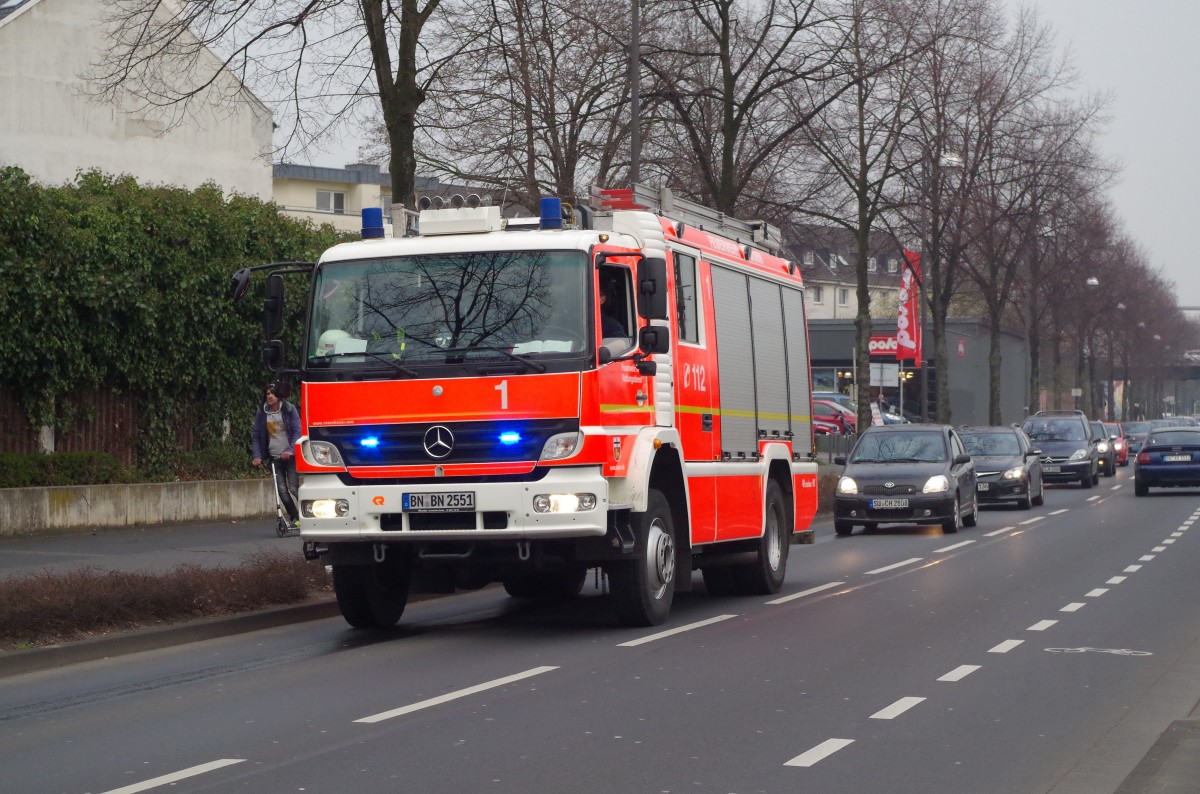 Das Tanklöschfahrzeug der Freiwilligen Feuerwehr Bonn-Mitte fuhr am 28.03.2015 an der Stadtbahnhaltestelle Bonn West entlang. Dort begleitete er ein Streufahrzeug. Leon Elias Heimbürger