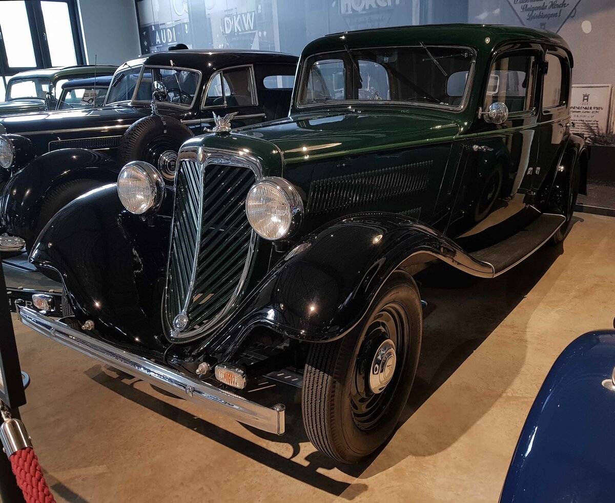 Wanderer W25 K, gebaut von 1936 bis 1938. Der 258 mal gebaute Wanderer W25 K war als Konkurrenzmodell zu den BMW Sportwagen der 1930´er Jahre gedacht. Er konnte aber bezüglich der Motorentechnik nicht mit den Münchener Sportwagen mithalten. Der Sechszylinderreihenmotor mit Kompressor leistete aus einem Hubraum von 1.950 cm³ Hubraum 85 PS und verhalf dem Auto zu einer Höchstgeschwindigkeit von 145 km/h. Audiforum Ingolstadt. Michael H.