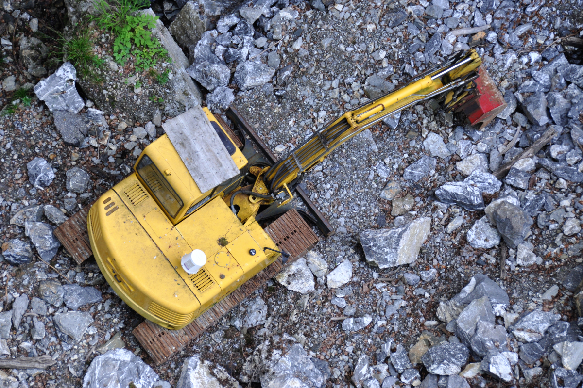 Nachdem ein Felssturz die Rappenlochbrücke (Dornbirn, Vorarlberg) am 10. Mai 2011 in die Tiefe gerissen hatte, war der Wasserabfluss eines Kleinkraftwerks blockiert. Der KW-Besitzer wollte die Schuttmassen beseitigen und brachte einen Bagger in die Schlucht. Die Arbeiten mussten aus Sicherheitsgründen eingestellt werden, und der Bagger blieb unten. Die Besucher der Rappenlochschlucht konnten so einen Komatsu-Bagger von oben bewundern. (Juli 2014) Georg Friebe