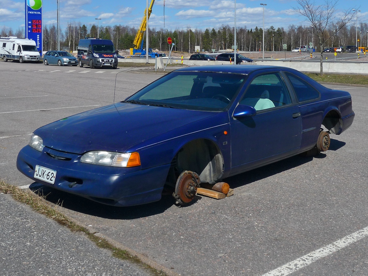Vermutlich sind bei diesem Fahrzeug die Räder einfach weggerostet... Gesehen auf dem Parkplatz einer Autobahn-Raststätte in Finnland, 3.5.13