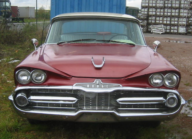 Dodge Coronet Sedan des Jahrganges 1959 wartet an einem Novembermorgen im Zollhof Bremerhaven auf seine Abholung. Die Coronet Baureihe war im Modelljahr 1959 die preisgünstigste Ausstattungsvariante. Der Wagen war wahlweise mit einem 6-Zylinderreihenmotor der aus 3.667 cm³ Hubraum 135 PS leistet, oder einem V8-motor mit 255 PS aus 5.340 cm³ Hubraum lieferbar. Der Einstiegspreis für dieses Modell lag bei US$ 2.537,00. Michael H.