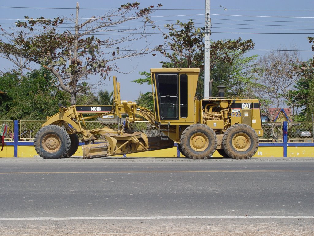 Ein Caterpillar 140HK Grader bei der Kleinstadt Lamplaimat im Nordosten Thailands am 18.01.2011