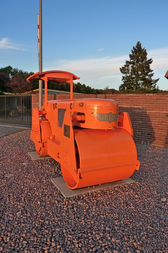 Hamm Dieselstraßenwalze, im verdienten Ruhestand auf dem Sockel, Okt.2009