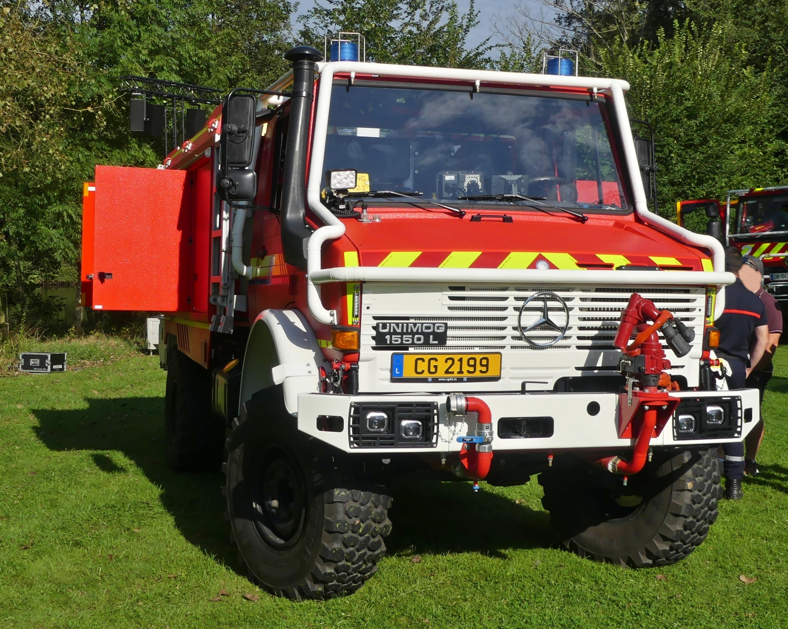 Mercedes Benz Unimog 1550 L, Gerätewagen der Wehr aus Kehlen, aufgenommen am Tag der Rettungsdienste in Echternach. 22.09.2024 De Rond Hans und Jeanny