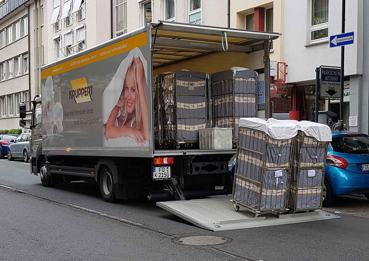 =MB Atego der Wäscherei KRUPPERT steht im Juni 2019 in Fulda zur Entladung