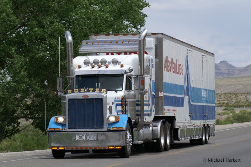 Ein schöner Peterbilt 379, unterwegs auf dem Hwy 93 bei Alama, Nevada. Mai 2006