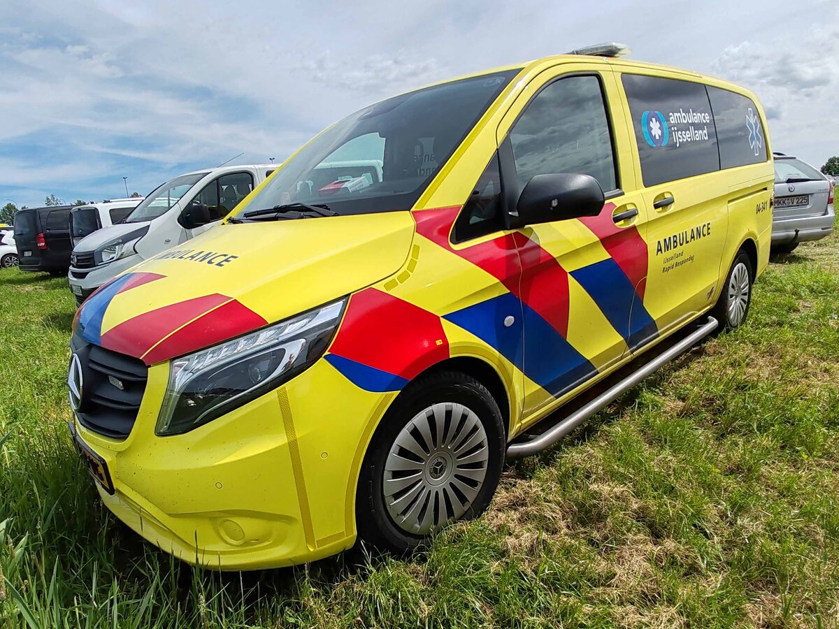 =MB Vito vom AMBULANCE ISSELLAND aus den Niederlanden, gesehen auf dem Parkgelände der Rettmobil 2024 in Fulda