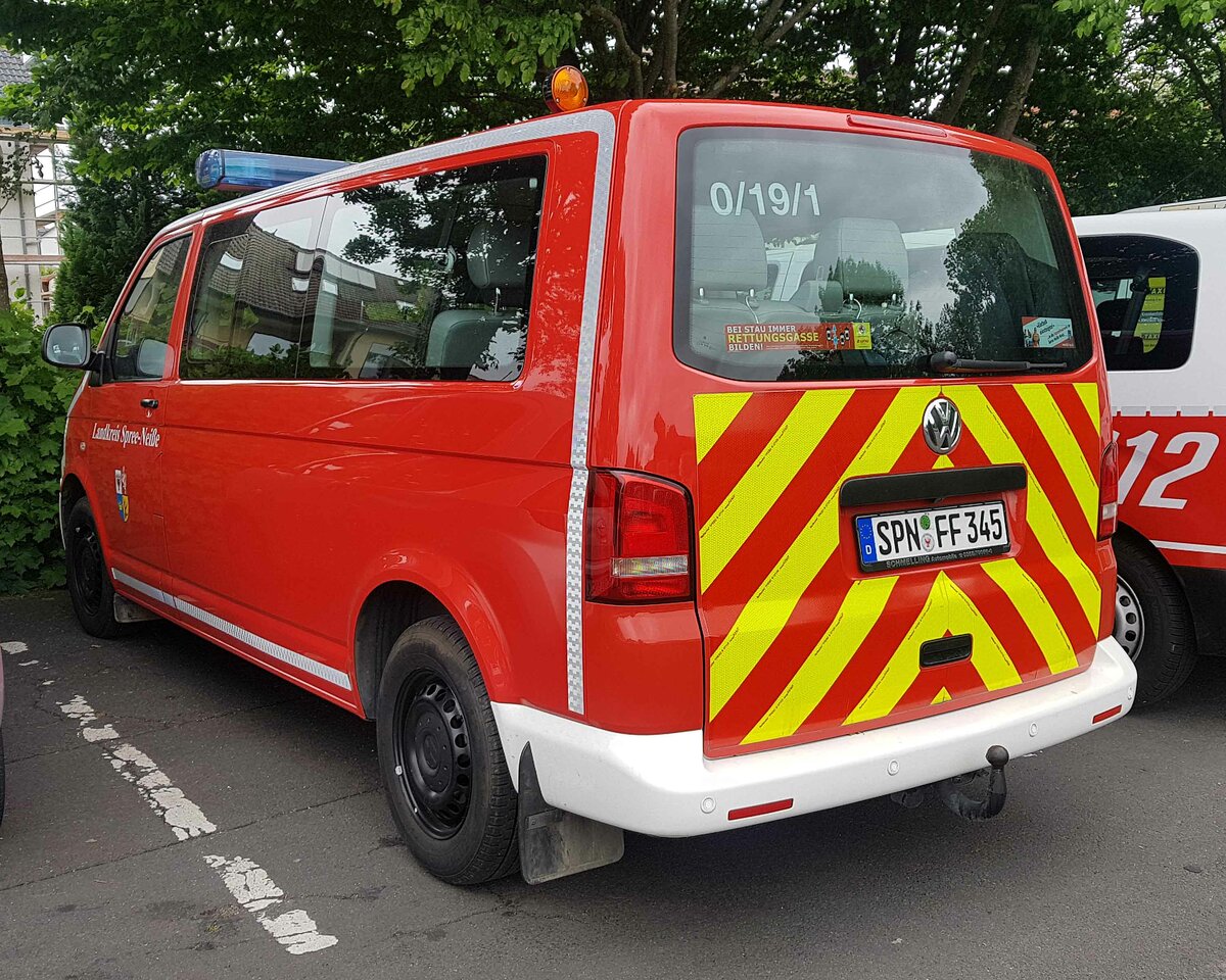 =VW T5 als MTW vom Landkreis SPREE-NEIßE steht anl. vom Internationalen Jugendfeuerwehr-Wettbewerb 2022 in 36100 Petersberg, Mai 2022