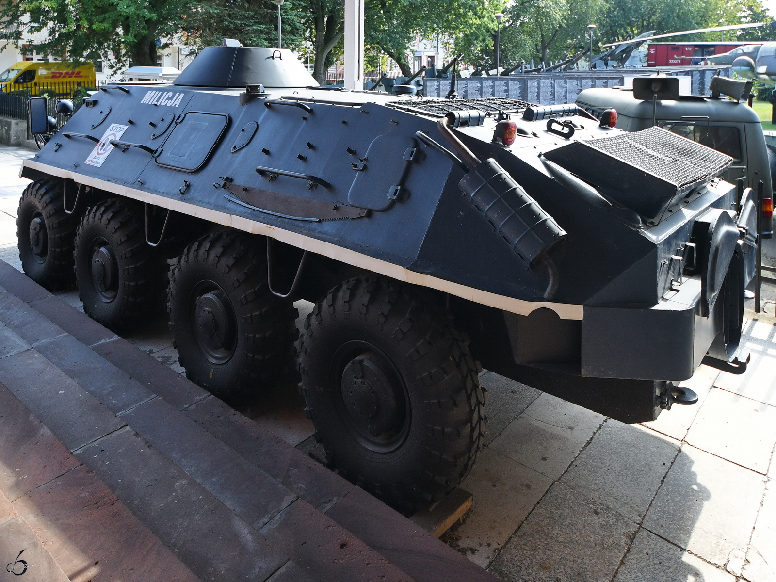 Dieser Schützenpanzerwagen BTR-60 PB hat das Farbkleid der Milicja Obywatelska, was von 1944 bis 1990 der offizielle Name der Polizei in Polen war. (Waffenmuseum Kołobrzg (Kolberg), September 2024) Christian Bremer