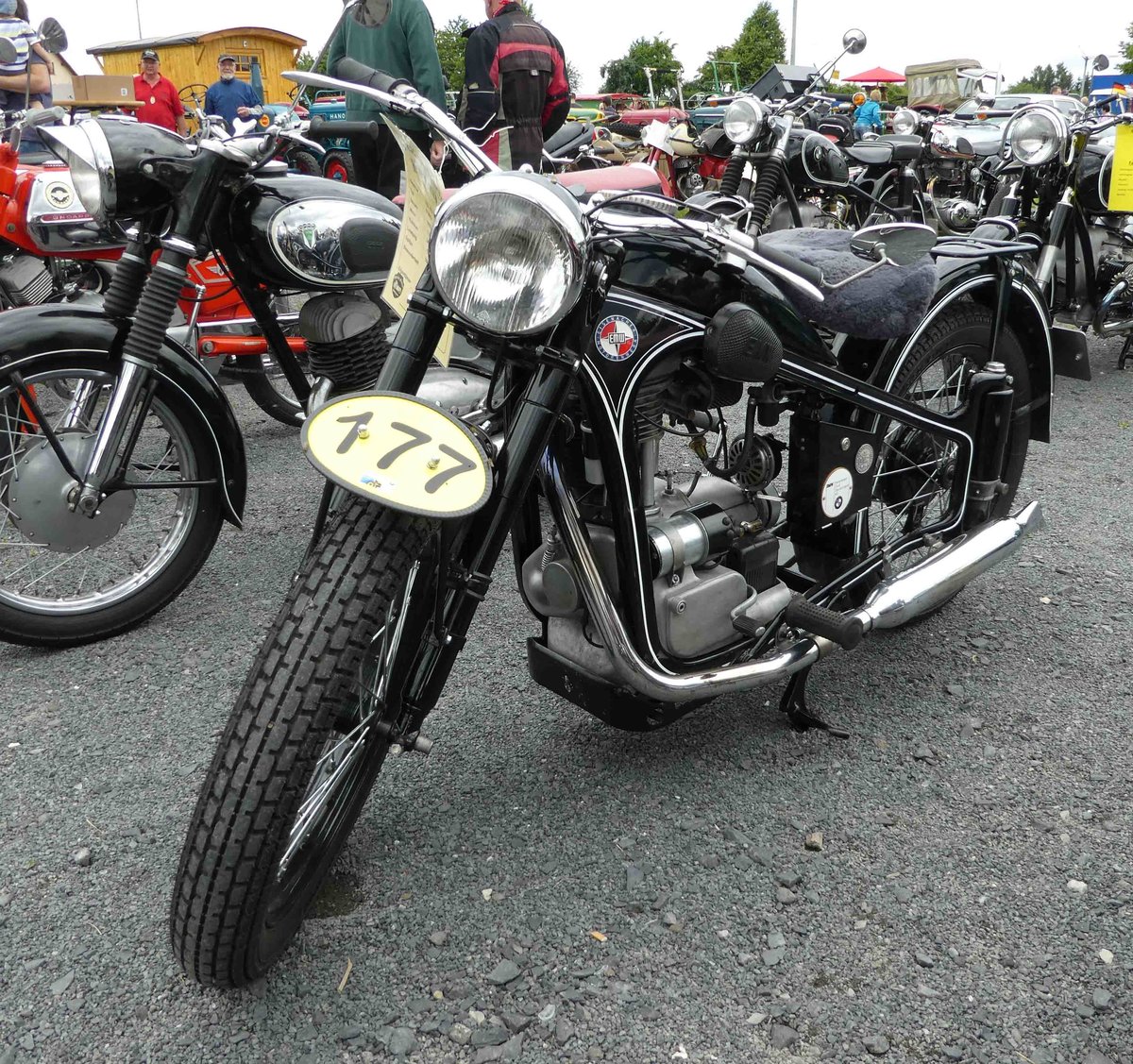 EMW R35, Oldtimer-Motorrad aus den Eisenacher Motoren Werken, auf BMW-Basis gebaut von 1945-55, Oldtimertreff Oberwinden, Juni 2015