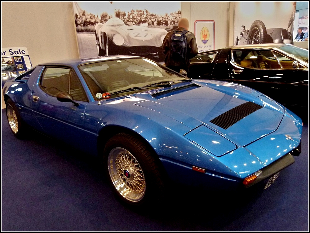 Maserati Merak wurde von 1973 bis 1982 gebaut. Er war mit 2,0 oder 3,0 l Motoren ausgerüstet, mit 190 bis 220Ps und max 250 Km/h schnell. Techno Classica 02.04.2011. De Rond Hans und Jeanny