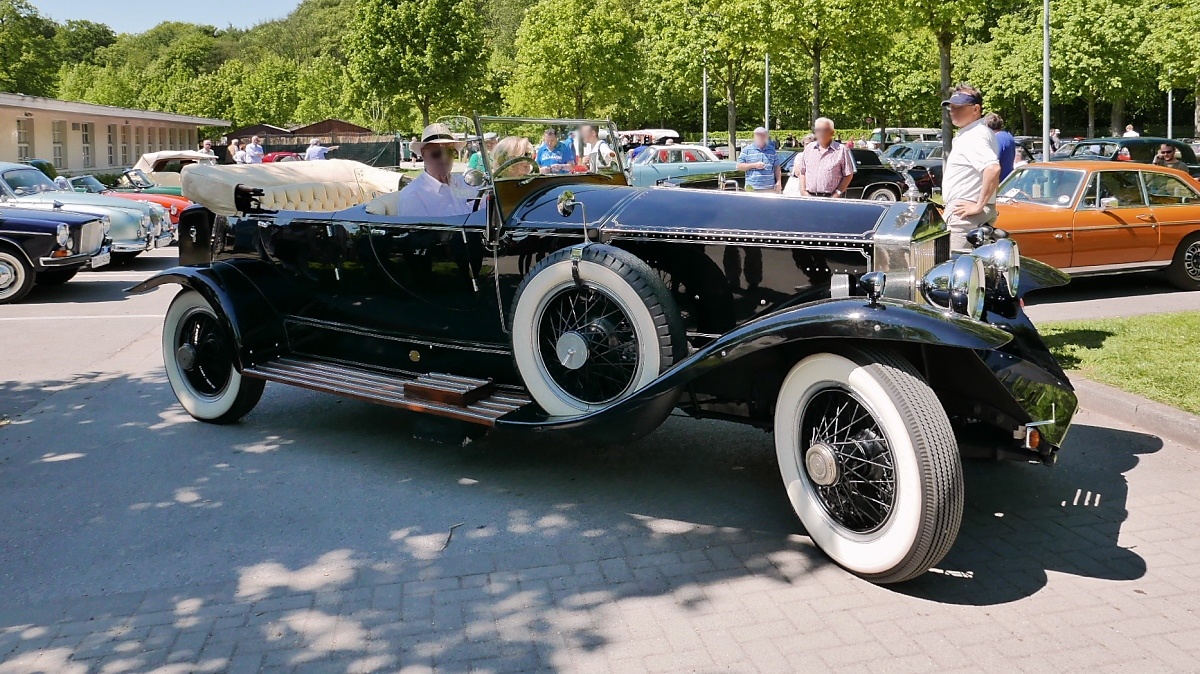 Rolls Royce Phantom I Park Ward Tourer. 1925 - 1929. In der Regel lieferte Rolls Royce nur die Fahrgestelle mit Motor aus, die dann bei einem Karossier eingekleidet wurden. Der 6-Zylinderreihenmotor hat einen Hubraum von 7668 cm³ und leistet 95 PS. Oldtimertreffen an der Krefelder Pferderennbahn am 12.06.2016.
