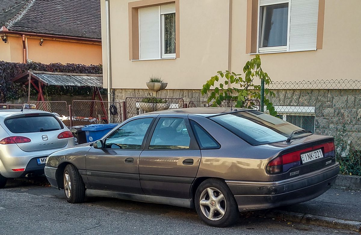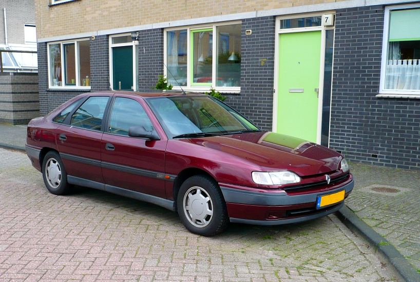 Renault Safrane. Der Safrane kam im Jahr 1992 als Nachfolger des Renault R25 auf den Markt. Er war nur als fünftürige Kombilimousine lieferbar. Der hier gezeigte Wagen ist ein Modell der so genannten Phase 2, wie er ab 1996 gebaut wurde. Das Modell war mit vier Benzinmotoren und einem Dieselmotor lieferbar. Standardmotorisierung war ein Vierzylinderreihenmotor mit 16 Ventiltechnik. Der Motor hat einen Hubraum von 1948 cm³ und leistet 136 PS. Oldtimer- und Youngtimertreffen an Mo´s Bikertreff in Krefeld am 08.10.2023. Michael H.