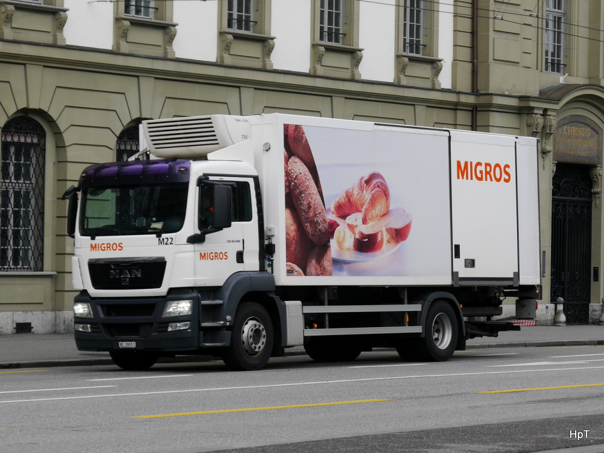 MAN Kühllaster unterwegs in der Stadt Bern am 06.01.2018