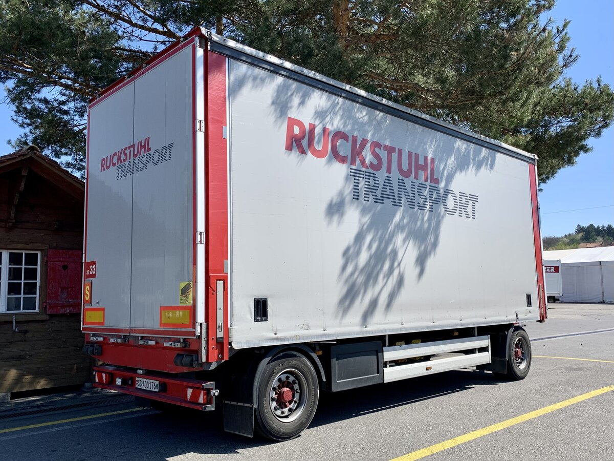 Ein Anhänger von Ruckstuhl Transport der am 16.4.22 in Kallnach steht.
