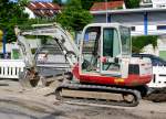 das ist ein Kramer-Radlader mit einer senkrecht nach unten gestellten Palettengabel. Mit dem Fahrzeug werden palettierte Baumaterialien z. B. Pflastersteine schnell an den jeweiligen Verarbeitungsort gebracht.