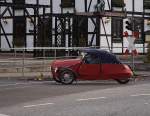 Dieses dreirädrige, zweisitzige Fahrzeug mit Kunstlederkarosserie heißt "Velorex" und wurde von 1950-73 in der Tschechoslowakai gebaut, der Antrieb erfolgte auf das Hinterrad, durch Motorradmotoren der Firmen Jawa und CZ.