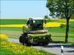 Mit Schwadaufnahmeeinheit-sprich Aufnahme von vorher gemähten Gras was zu Heu geworden ist.