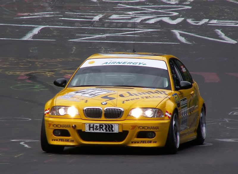 Die Nordschleife des Nürburgrings gleicht eher einer Achterbahn denn einer Rennstrecke...hier legt sich der Pilot des BMWs gerade einen Gegener zurecht...das Foto stammt vom 18.08.2007