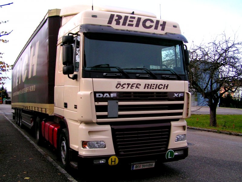 DAF-(XF95.480) abgestellt auf einem Firmenparkplatz; 071223