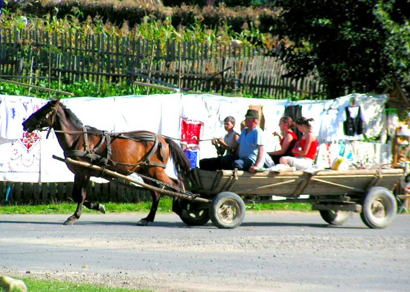 Ein "alltägliches" Bild aus Rumänien, wo neben motorisiertem Verkehr noch Pferdefuhrwerke ihre Berechtigung finden; 050910