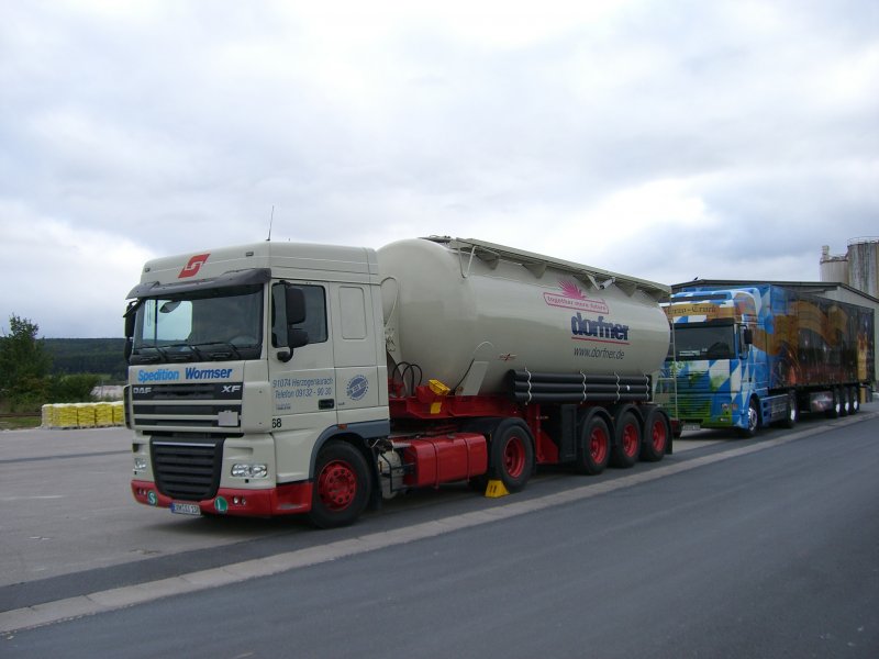 Ein Silozug der Spedition Wormser bei der Firma Gebr. Dorfner, für die er auch wirbt. (dahinter der Herzo-Truck)(09.09.2007)