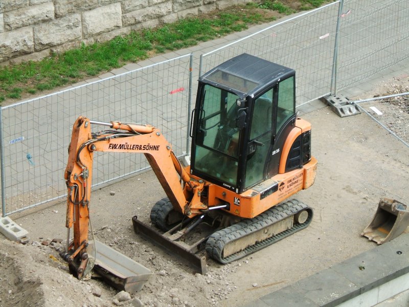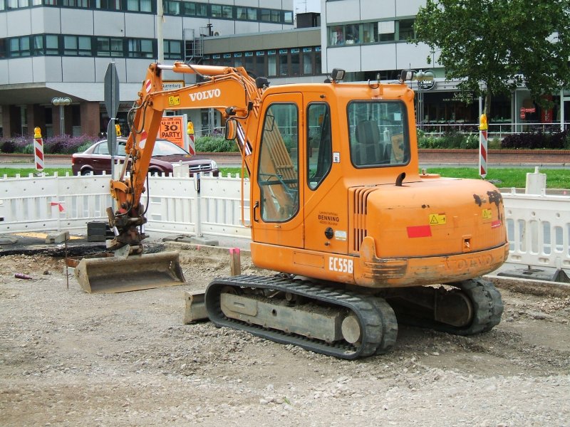 Klein-Bagger Volvo EC 55 B am Bahnhofs-Vorplatz in Bochum Hbf.