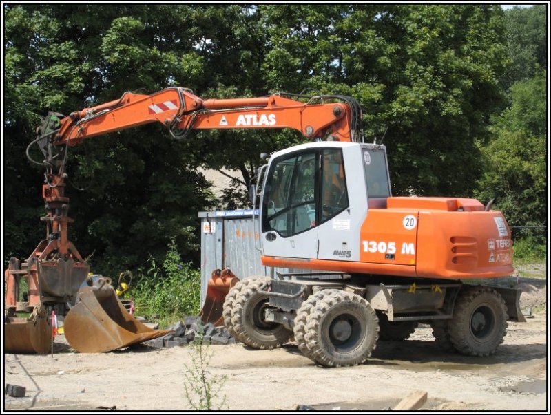 Dieser Atlas-Bagger stand am 08.07.2007 bei einer Baustelle in der Nähe des Düsseldorfer Rheinhafens.