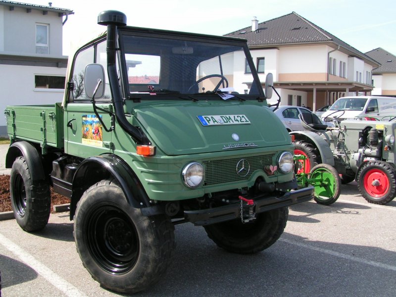direkt schelmenhaft wirkt der "15er" Steyr80 neben dem Steyr280 mit seinen 60 Pferdestärken, anlässlich Oldtimertreffen St. Martin/Innkr. 080330