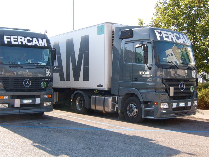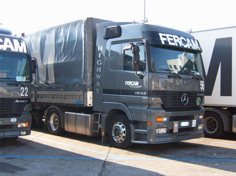 Ein '97er Actros Megaspace der Spedition FERCAM. Besonders ist hierbei das damals nur für Italien erhältliche "Highway" Ausstattungspaket, welches an der Schrift an den Windleitblechen zu erkennen ist. (Bozen, 2006)