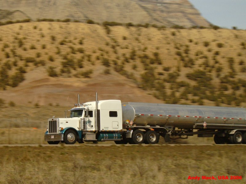 Ein ziemlich alter Peterbilt schnauft auf der Interstate in Richtung Utah durch den US-Bundesstaat Colorado (März 2006)