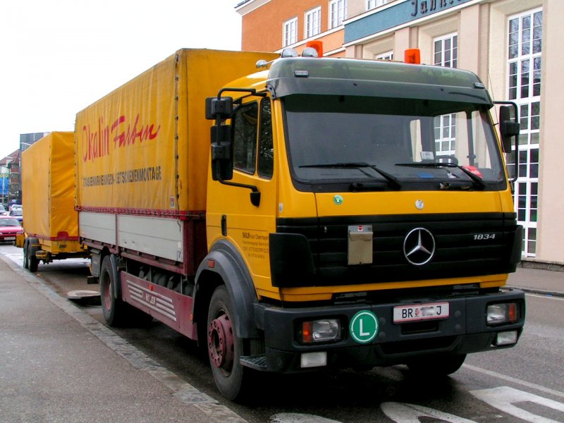 Mercedes 1834 einer Farbenerzeugungsfirma anlässlich Bodenmarkierungsarbeiten; 080423