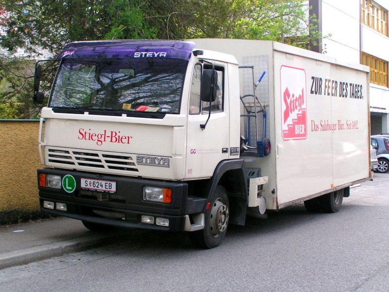 STEYR 13S18 der STIEGL-Brauerei im Zustelldienst in der Stadt Ried i.I.; 080421