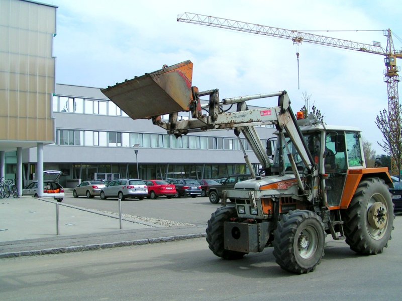 Steyr1090 mit Frontladerschaufel, passiert gerade die Maschinenbau-HTL in Ried i.I.;_080421